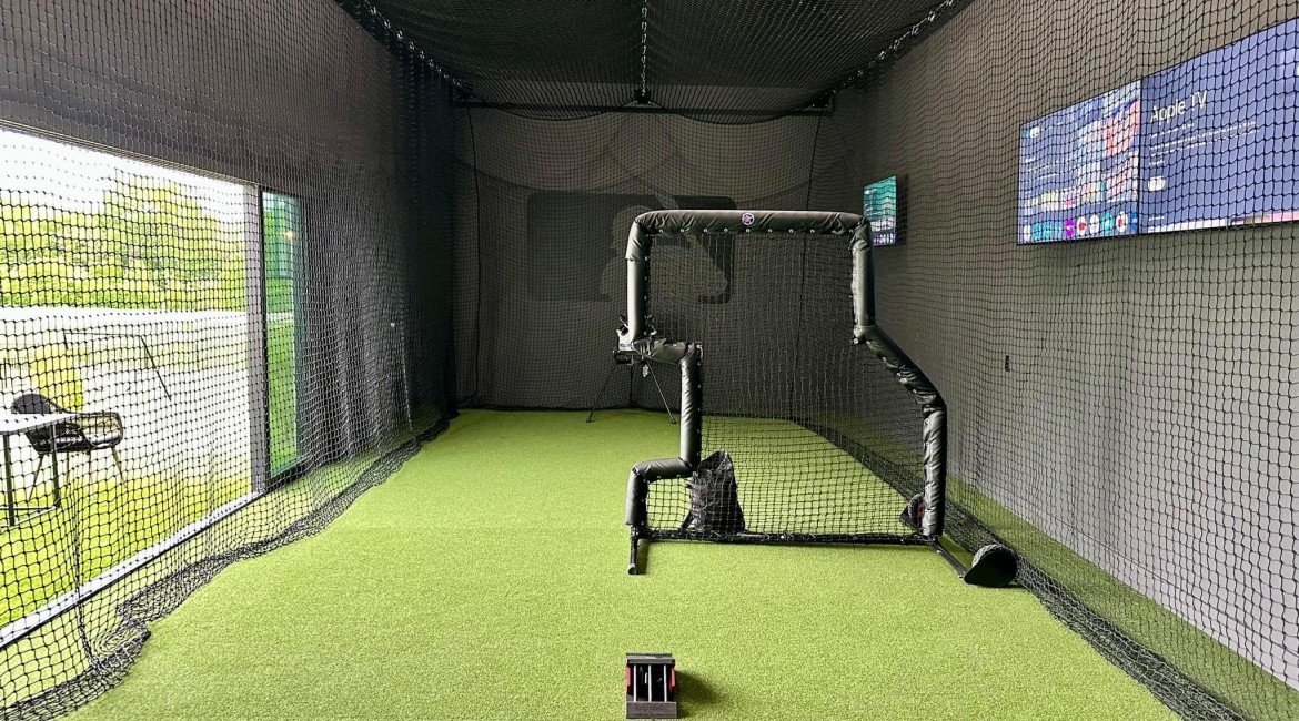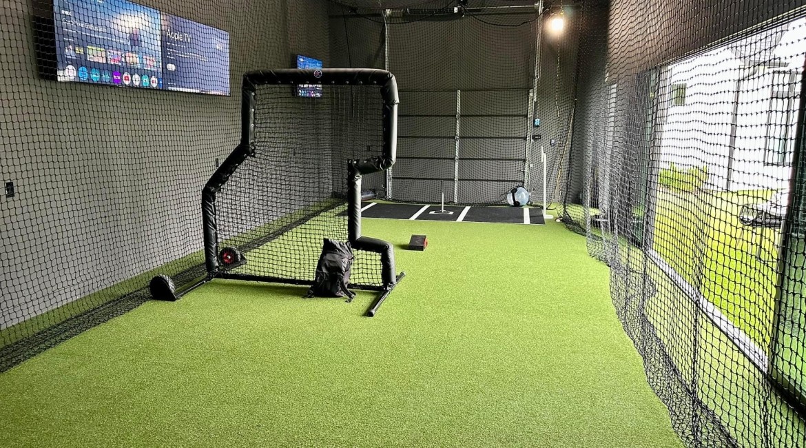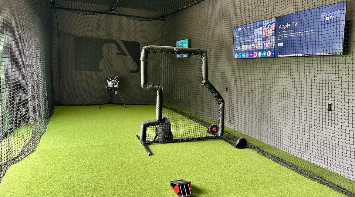 Inside the tunnel, the customer has a Pro Combo 6.5’ x 7’ L-Screen with Padding and Wheel Kit, a HitTrax, and a Black Hitter’s Mat!