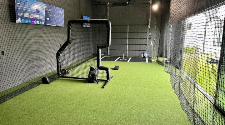 The customer conveniently has multiple TV’s for viewing the HitTrax while simultaneously catching a big game! This is the ultimate residential batting cage!