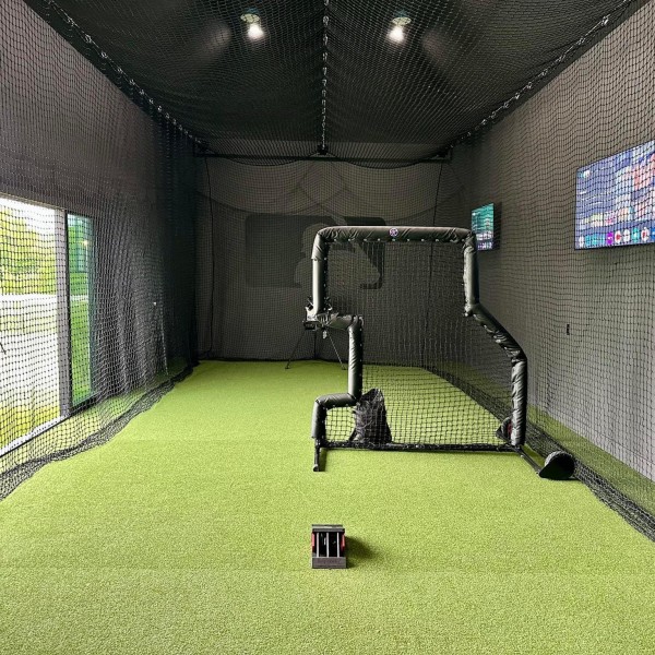 Our 70' L x 12' W x 12' H #42 Poly Batting Cage Net is a great option if you are looking for a stock size net for residential or light team use! This net comes weather and UV resistant, corner entry door, and center rib line!