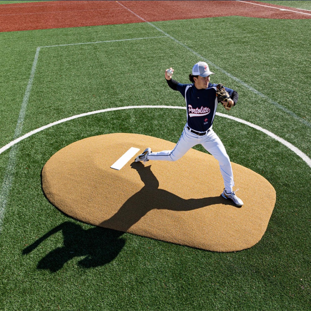 Measuring in at 8” H x 7’ W x 10’5” L, this mound is perfect for 14 and over! This mound has tapered edges for a smooth transition, durable wear pad for many seasons of use, and high quality turf in multiple color options! The weight is 200 lbs, making this portable on any field with a group of people!