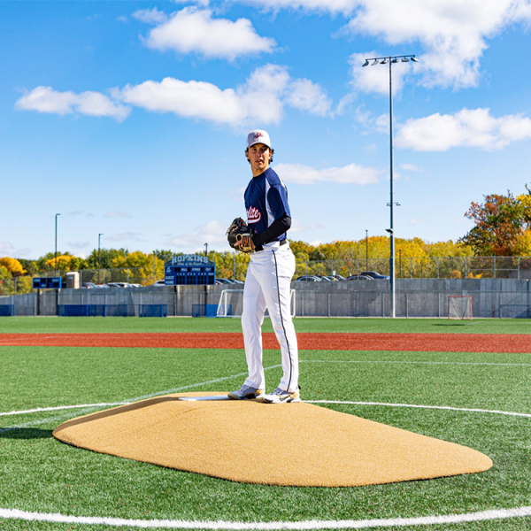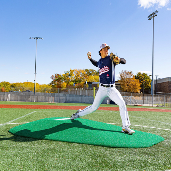 Measuring in at 8” H x 7’ W x 10’5” L, this mound is perfect for 14 and over! This mound has tapered edges for a smooth transition, durable wear pad for many seasons of use, and high quality turf in multiple color options! The weight of each section is 95 lbs and 105 lbs, making this portable on any field with a group of people!
