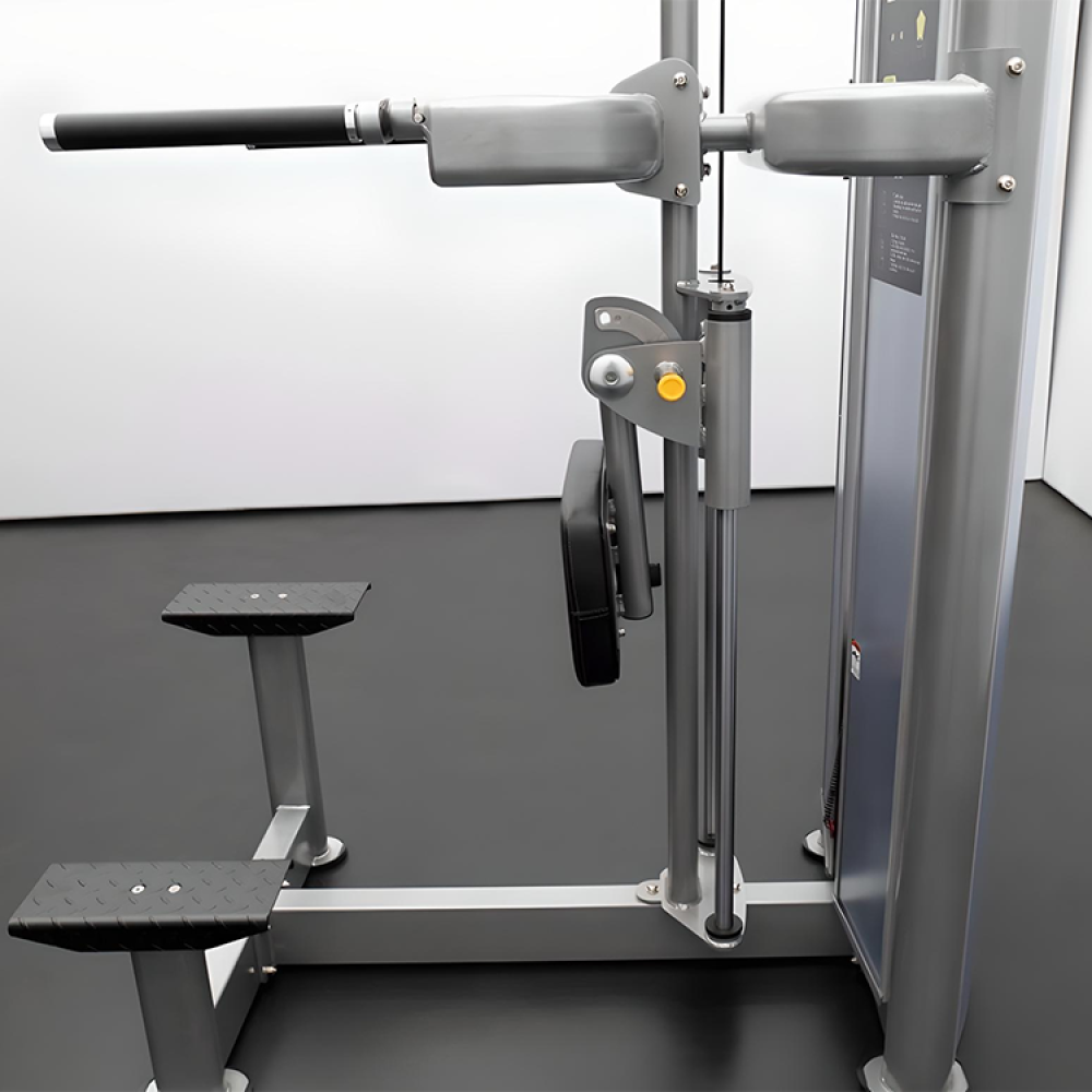 Our BodyKore Assisted Dip and Pull-Up Combo Machine is a great tool for users looking to effectively and safely perform chin-ups, dips, and pull-ups! You can easily fold the knee pad to do unassisted exercises and switch between exercises without getting off of the machine! The grips are retained with aluminum collars to prevent them from slipping during use! Steps allow users to get on and off the machine safely! Rubber feet prevent the machine from shifting while you are performing exercises! This unit comes with a lifetime warranty on the frame!