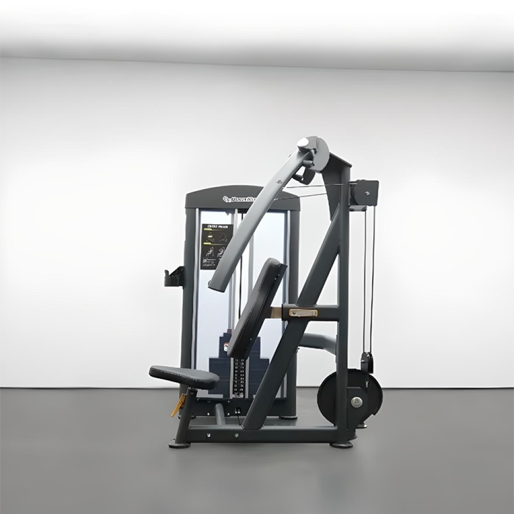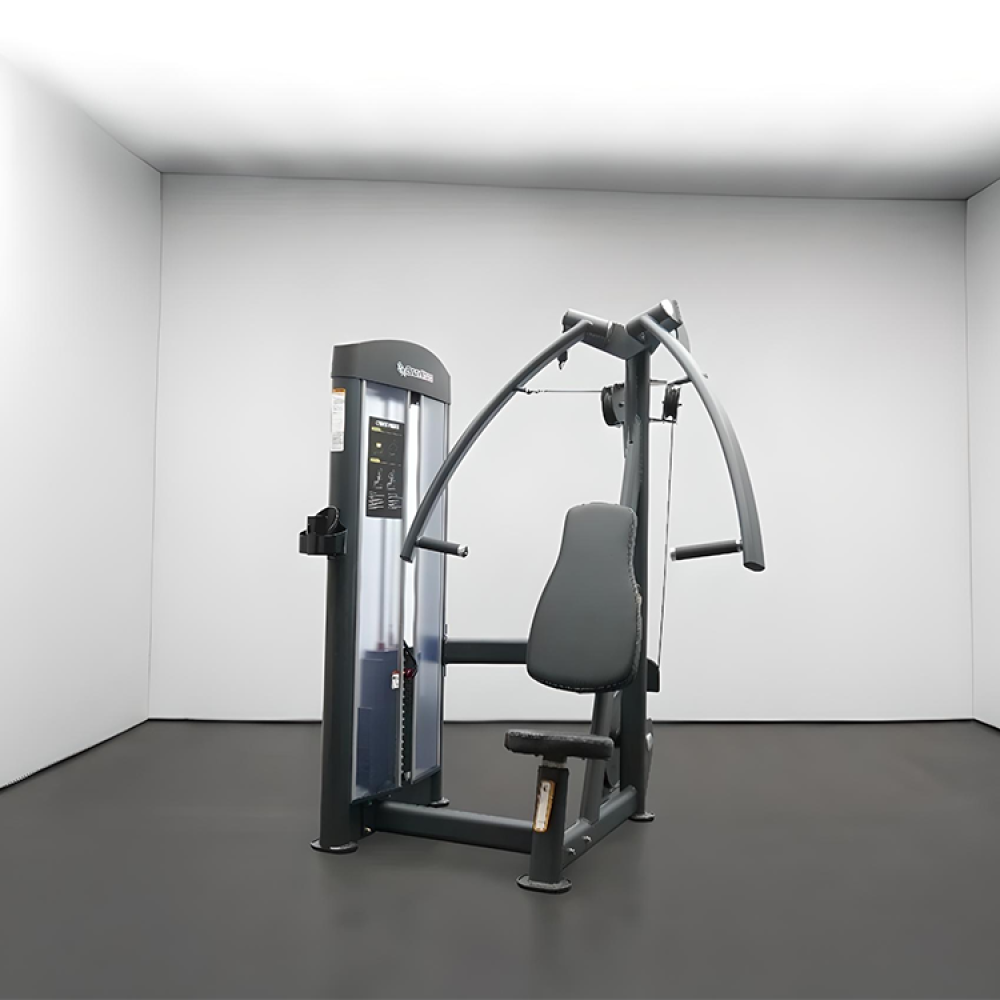- Combines the chest press and pectoral fly into one natural pressing motion