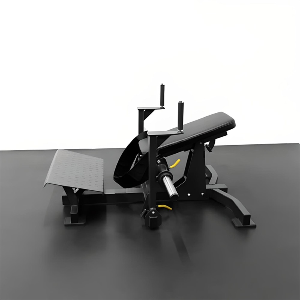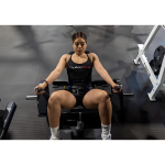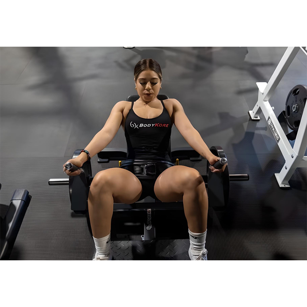 Our BodyKore Hip Thrust and Glute Station safely isolates your glutes, building power through a strong hip bridge motion and improving core/hip stability! This machine gives you the full benefits of the hip thrust exercise without compromising form! A comfortable padded waist harness secures the user to the back pad which supports the full length of the spine for added safety! Users can load up to (4) plates on each side for a maximum of 360 lbs! The oversized angled foot platform accommodates users of all size! Dual sided safety catch and release mechanism makes using this machine easy! This would be a great addition for your commercial/school gym or physical therapy clinic! This unit comes with a lifetime warranty on the frame!