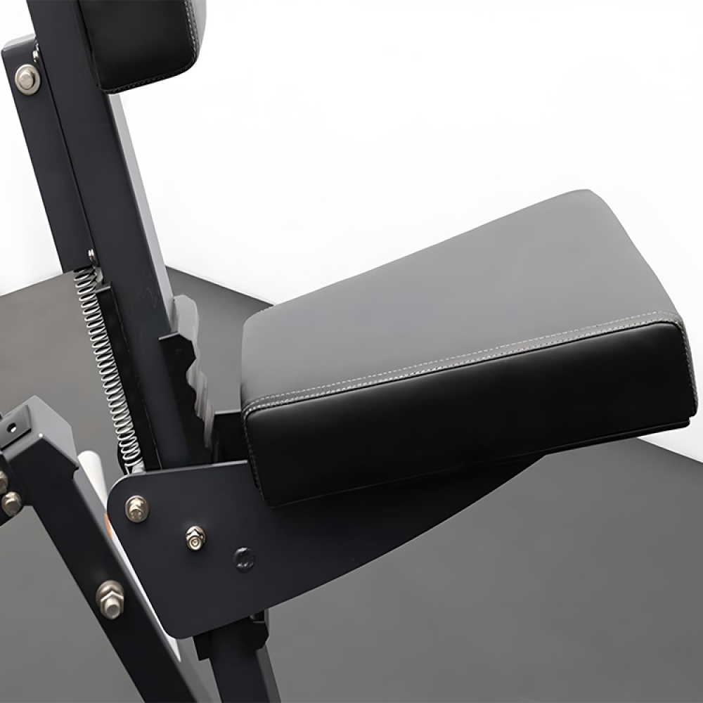 - Large foot plate and chest pad support increase stabilization for greater muscle concentration