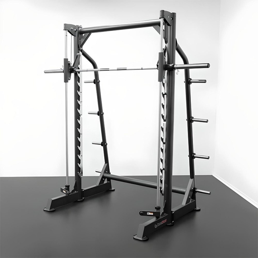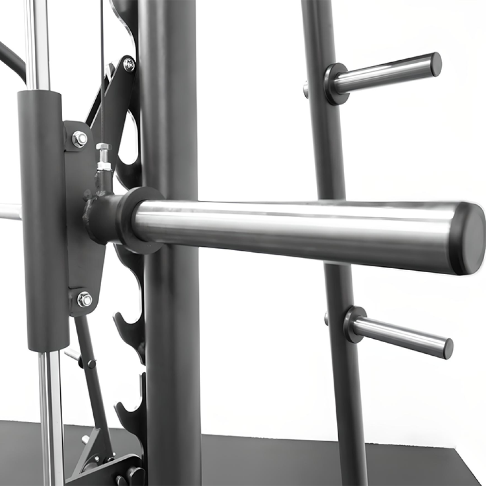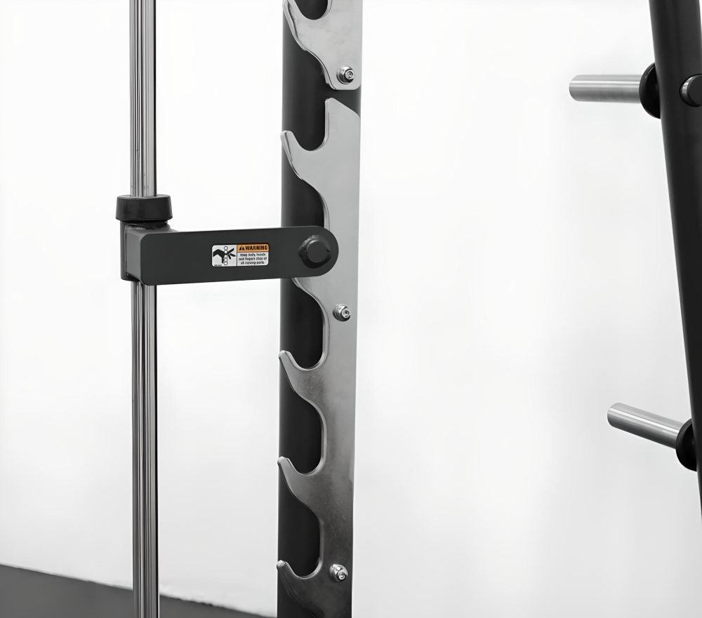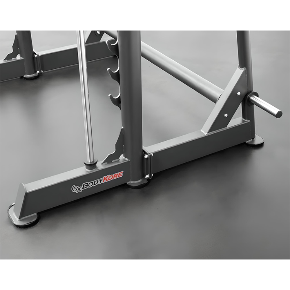 Our BodyKore Smith Machine is a must have for your commercial/school gym or physical therapy clinic! The counter-balanced double pulley system ensures safety for all users! High quality guide rails provide an even, smooth movement! Multiple safety spotter positions and (13) height adjustments allow users to perform many different exercises! This unit comes with a lifetime warranty on the frame!