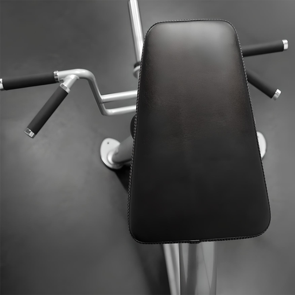 - Chest pad and foot plates secure your upper torso to isolate your lats and rear delts