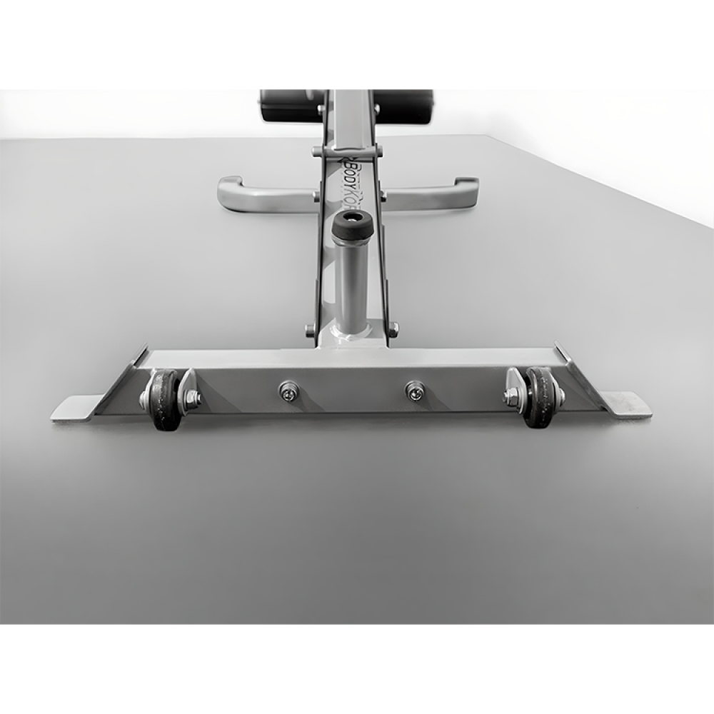 Our BodyKore Universal Bench will be a great addition to your commercial/school gym or physical therapy clinic! It is designed to allow users a wide variety of positions including decline, flat, incline, and 90 degrees! You can perform curls, dumbbell presses, rows, skull crushers, and much more! This machine is excellent for building your lower pectoral muscles and upper chest! Attachments such as the Leg Curl/Leg Extension and Preacher Curl add versatility to this bench, turning it into a full body training tool! Wear resistant seats are made with high density foam to provide you with comfort and stability! The (3) adjustable foam roller and seat settings accommodate users of all sizes! Easily transport the bench with the base mounted wheels and attached handle! This unit comes with a lifetime warranty on the frame!