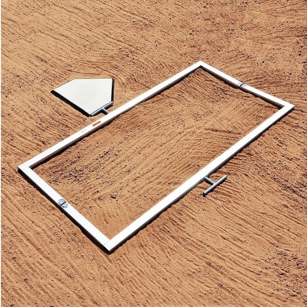 This Foldable Batter’s Box Template comes with 1” Square Galvanized Steel, making it very portable and durable! The home plate guide attached to the template allows for easy alignment on any field! This product is intended for softball batter’s boxes!