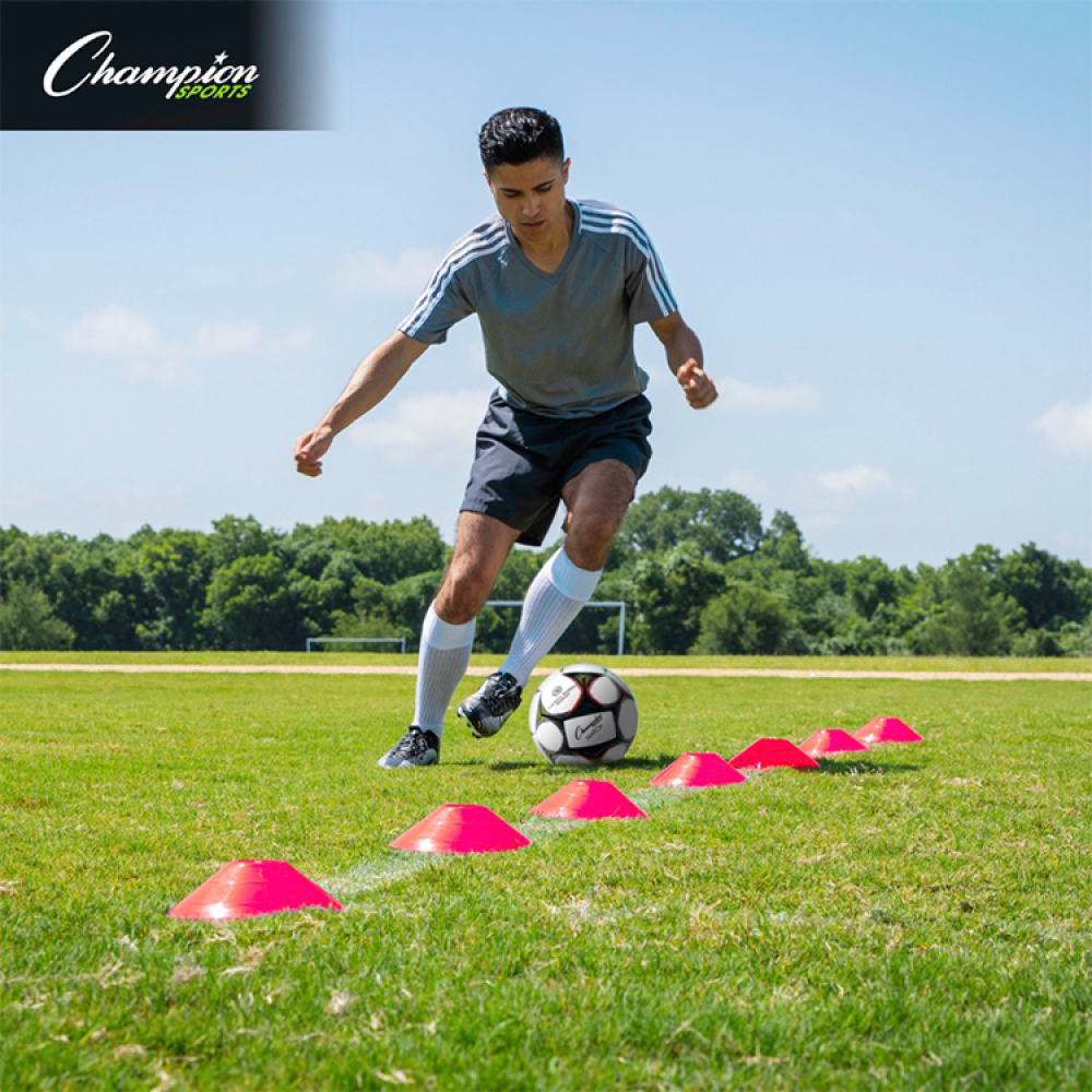 These Champion Agility Cones are a great training tool that can be used for a variety of sports or training! The cones are flexible and measure 7.5" Diameter x 2" H! Use these cones for agility work or as court/field markers! With their convenient size and portability, these cones are easy to store, making them a must-have for athletes and coaches looking to enhance their training regimens!