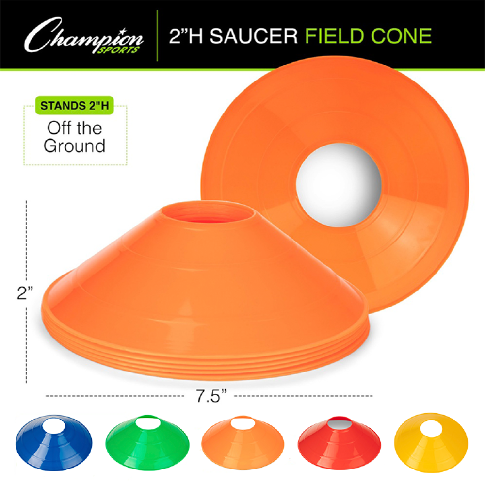 These Champion Agility Cones are a great training tool that can be used for a variety of sports or training! The cones are flexible and measure 7.5" Diameter x 2" H! Use these cones for agility work or as court/field markers! With their convenient size and portability, these cones are easy to store, making them a must-have for athletes and coaches looking to enhance their training regimens!
