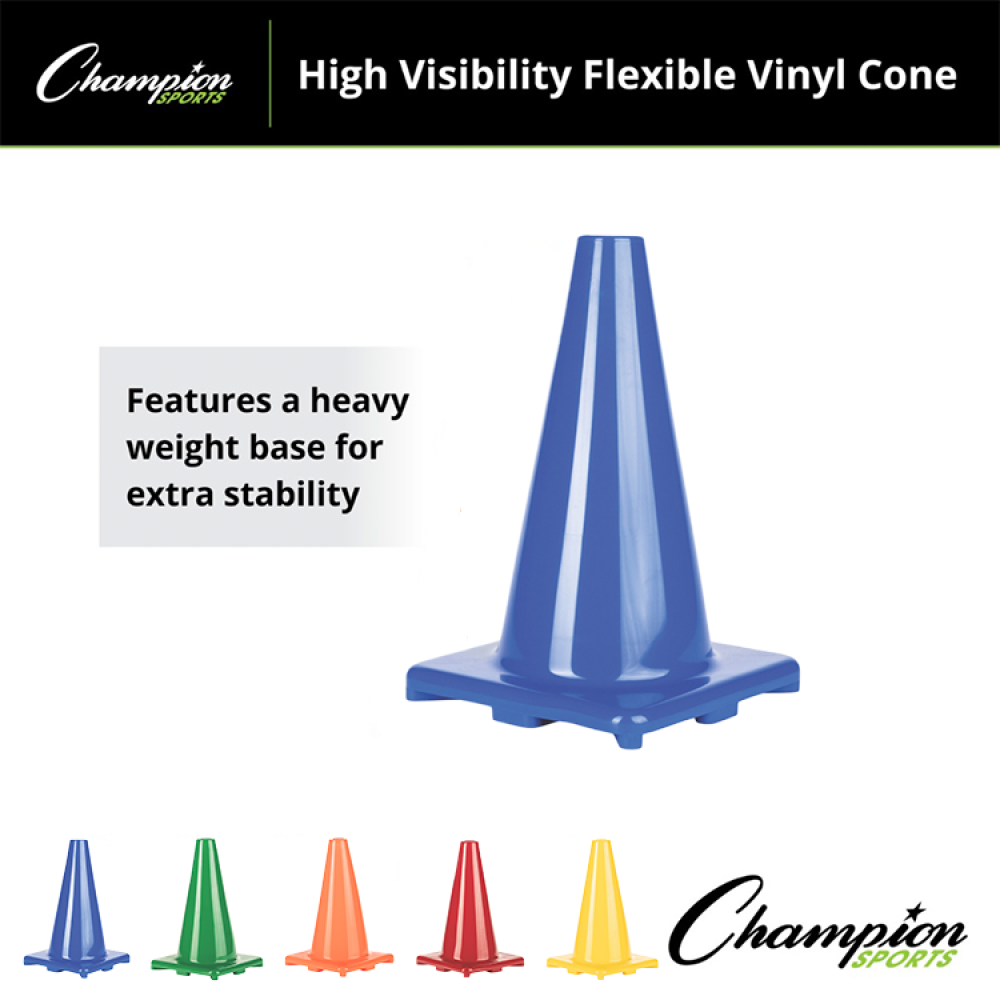 Our Champion Sports High Visibility Flexible Vinyl Cones can be used for a variety of activities and sports! These durable cones are made of flexible vinyl in single-piece construction and feature a weighted bottom for added stability! Whether you're training for a specific sport or simply looking to improve your overall athleticism, these cones are a great addition to your training equipment!