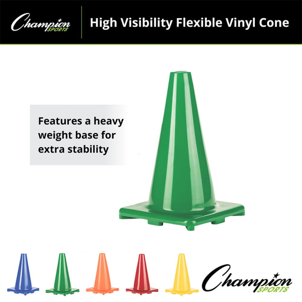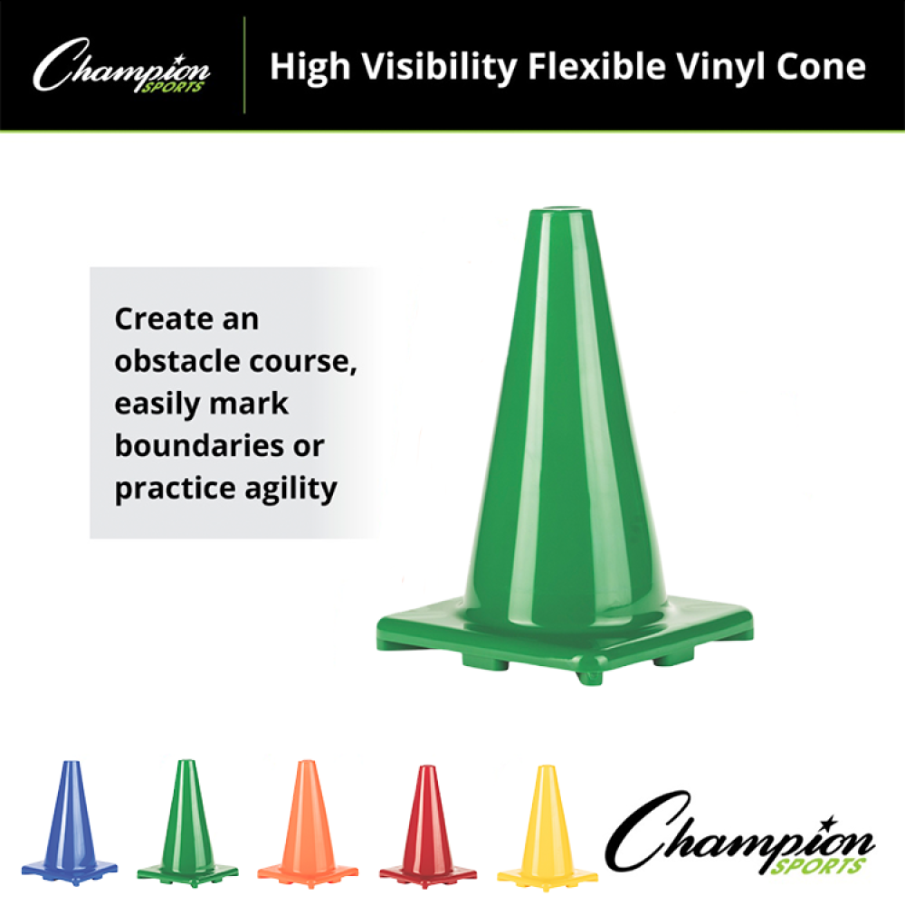 Our Champion Sports High Visibility Flexible Vinyl Cones can be used for a variety of activities and sports! These durable cones are made of flexible vinyl in single-piece construction and feature a weighted bottom for added stability! Whether you're training for a specific sport or simply looking to improve your overall athleticism, these cones are a great addition to your training equipment!
