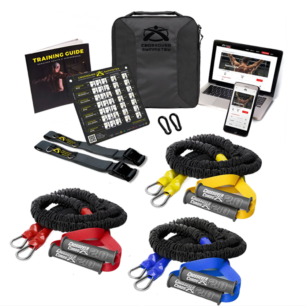 Crossover Symmetry Cord Packages are the safest, most durable cords on the planet!  They feature a unique handle to carabiner configuration allowing for easy setup anywhere!  The full length nylon sleeve protects the cord from UV rays, over-stretching, and injury from breakage!  Packages are designed to provide a comprehensive system to improve shoulder performance while reducing pain!
