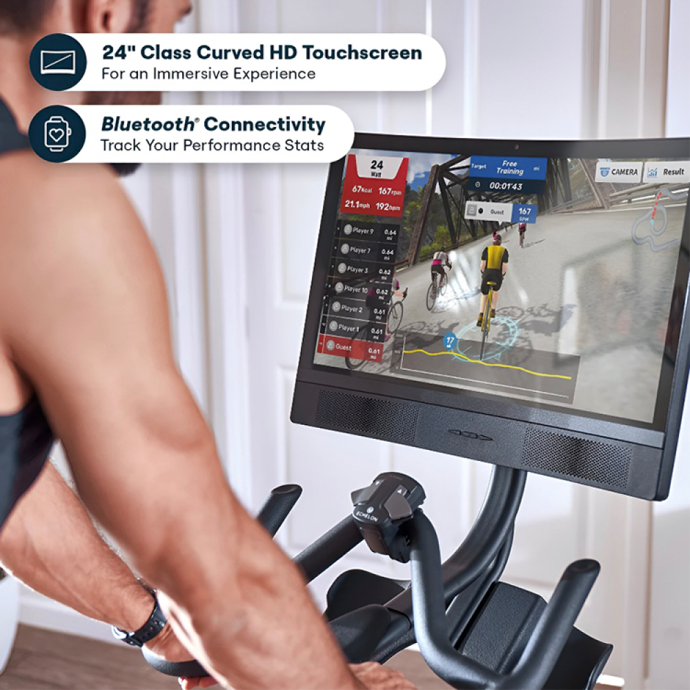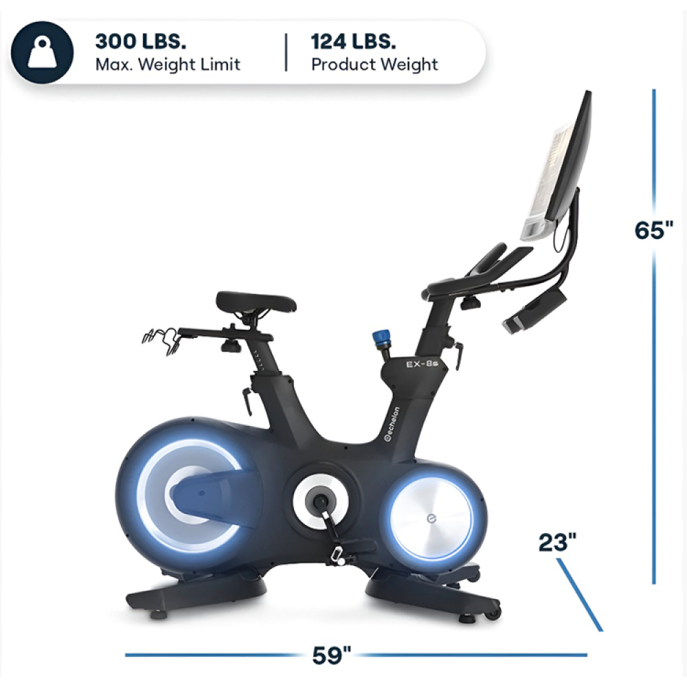 The future of connected fitness just got brighter! Built to mimic the feel of a traditional road bike, the Echelon EX-8S Light Commercial Bike features an oversized curved 24" Class HD touchscreen that allows you to simulate the feeling of a studio cycling class! Customize your ride with 32 whisper quiet magnetic resistance levels! The dual-ring design includes 15 LED colors that change with your performance zone! Discover a first-of-its-kind connected bike designed to motivate and impress!