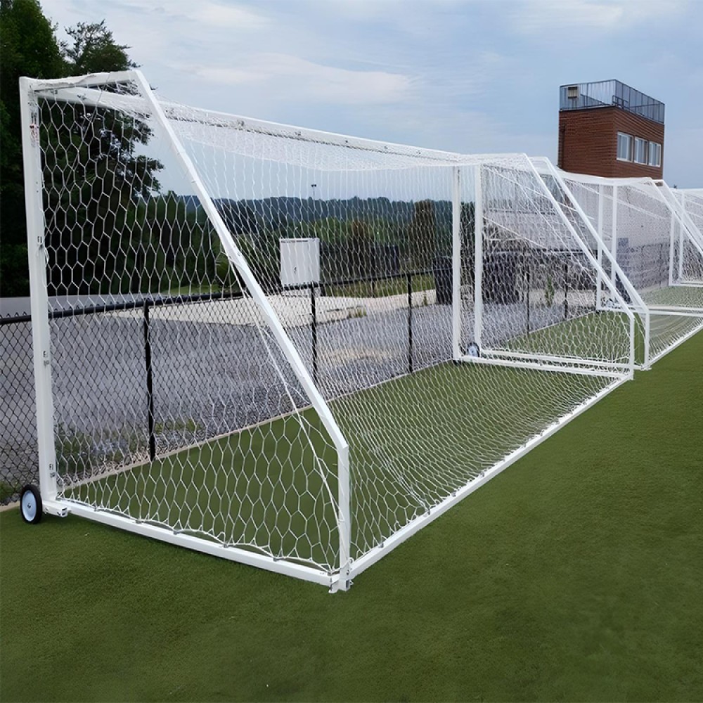 All Golden Goal 44 portable goals are sold in pairs and come with the goal structure, backstays, ground bar, transport wheel kits, auger style ground anchors, and a professional style hexagonal net!  Additionally, all goals meet NFHS, NCAA, and FIFA rules!