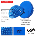 Our JFit Balance Pods will be a great addition to your workout space! These are great for improving agility and balance! They can be used flat side or round side up, offering varying degrees of difficulty and instability depending on skill level or application! Additionally, the balance pods can be used for massage therapy and rehabilitation! The textured surface is great for releasing tight muscles and forms to your feet for treating plantar fascia! A storage bag is included making them easy to transport for work anywhere you go!