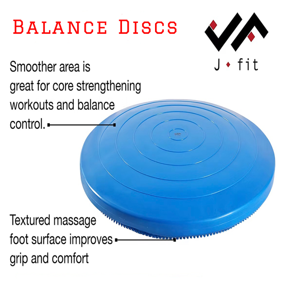 With our JFit Balance Discs, you can improve your balance, coordination, flexibility, and core strength anywhere, anytime! The discs are safe for kids and adults! The textured pattern improves grip and comfort during exercises, while the discs are molded with high-tensile materials rated to ensure a long life-span without having to repeatedly fill with air!