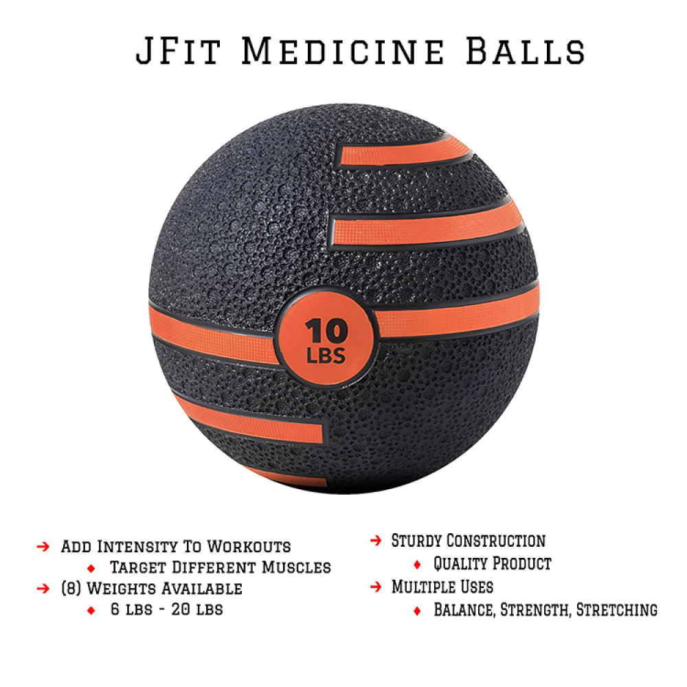 Our JFit Medicine Balls with Dual Texture are a great addition to any residential or commercial gym! Made from durable rubber and a strong construction that won’t puncture, these are built to last years to come! The dual grip texture allows a comfortable, secure hold! Whether you are a beginner, athlete, physical therapist, professional lifter, or yoga instructor, these balls will serve as a premium alternative to free weights! These can be used for core exercises, squats, push-ups, lunges, and more!