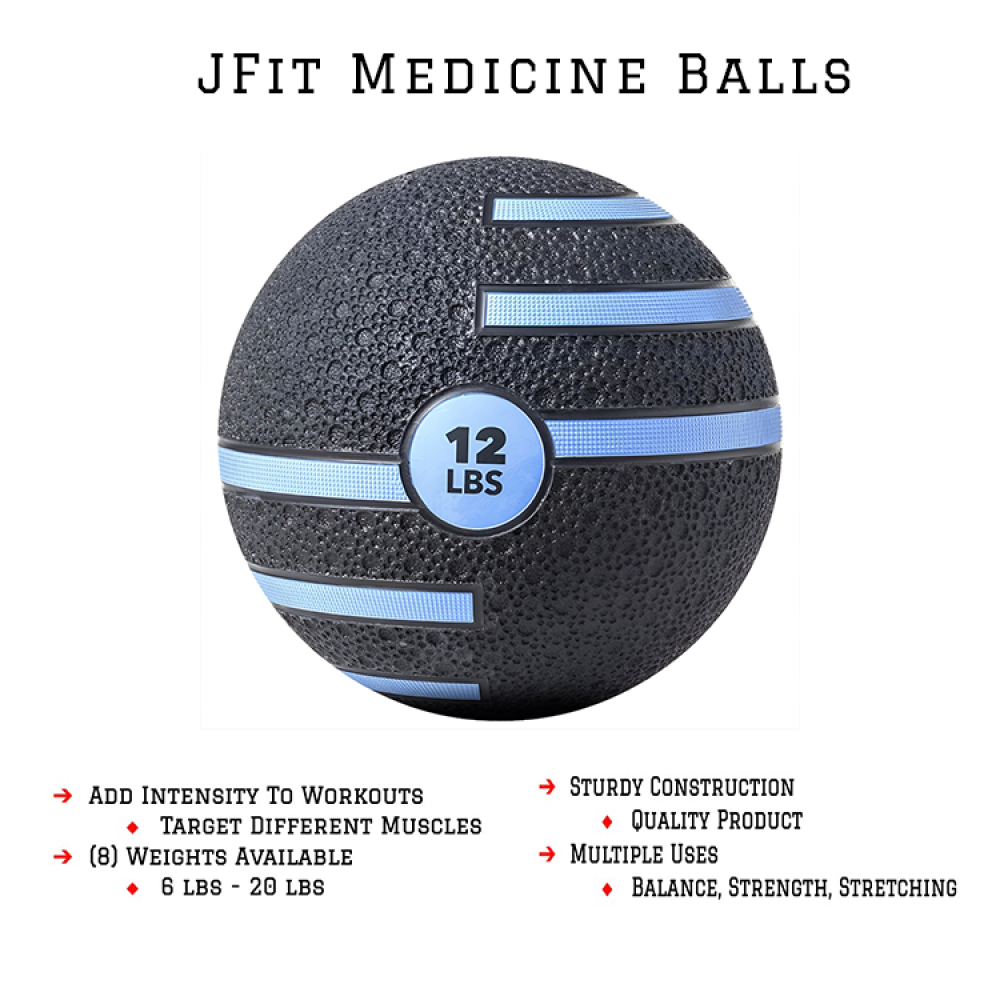 Our JFit Medicine Balls with Dual Texture are a great addition to any residential or commercial gym! Made from durable rubber and a strong construction that won’t puncture, these are built to last years to come! The dual grip texture allows a comfortable, secure hold! Whether you are a beginner, athlete, physical therapist, professional lifter, or yoga instructor, these balls will serve as a premium alternative to free weights! These can be used for core exercises, squats, push-ups, lunges, and more!