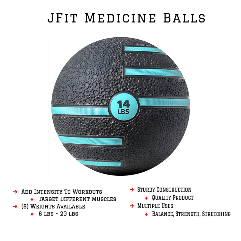Our JFit Medicine Balls with Dual Texture are a great addition to any residential or commercial gym! Made from durable rubber and a strong construction that won’t puncture, these are built to last years to come! The dual grip texture allows a comfortable, secure hold! Whether you are a beginner, athlete, physical therapist, professional lifter, or yoga instructor, these balls will serve as a premium alternative to free weights! These can be used for core exercises, squats, push-ups, lunges, and more!