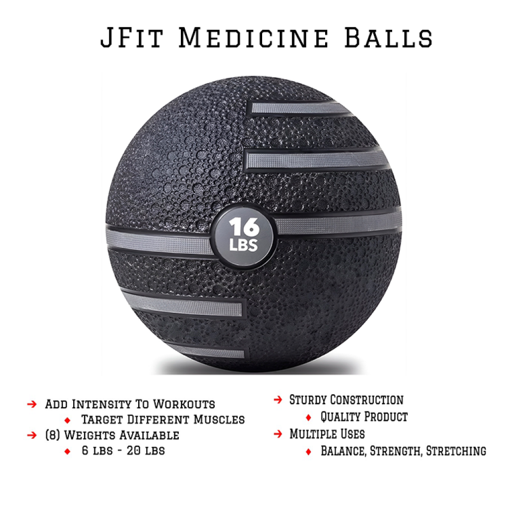 Our JFit Medicine Balls with Dual Texture are a great addition to any residential or commercial gym! Made from durable rubber and a strong construction that won’t puncture, these are built to last years to come! The dual grip texture allows a comfortable, secure hold! Whether you are a beginner, athlete, physical therapist, professional lifter, or yoga instructor, these balls will serve as a premium alternative to free weights! These can be used for core exercises, squats, push-ups, lunges, and more!