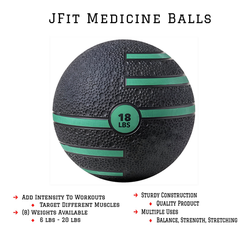 Our JFit Medicine Balls with Dual Texture are a great addition to any residential or commercial gym! Made from durable rubber and a strong construction that won’t puncture, these are built to last years to come! The dual grip texture allows a comfortable, secure hold! Whether you are a beginner, athlete, physical therapist, professional lifter, or yoga instructor, these balls will serve as a premium alternative to free weights! These can be used for core exercises, squats, push-ups, lunges, and more!