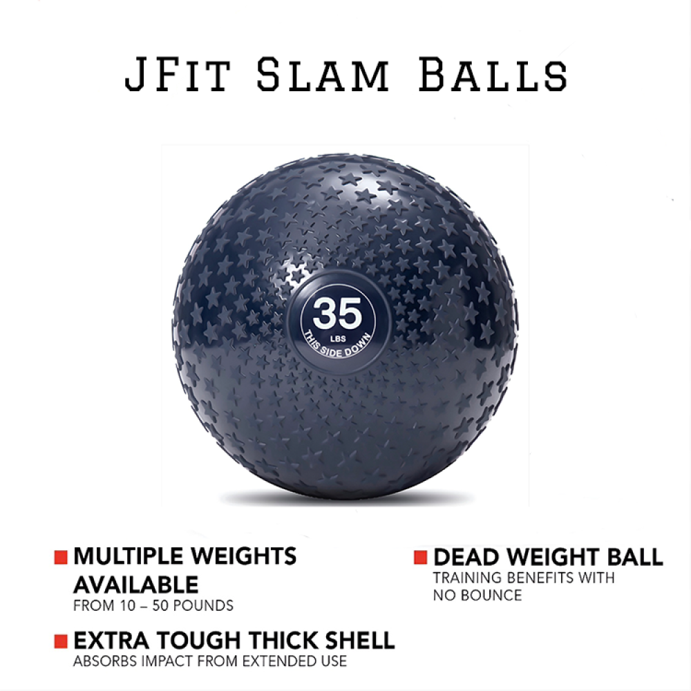 Our JFit Slam Balls with Stars are a great addition to any residential or commercial gym! Made from durable rubber and a strong construction that won’t puncture, these are built to last years to come! The star pattern texture allows a comfortable, secure hold! These premium sand filled slam balls are designed for speed and high impact! These can be used for core exercises, slams, wall tosses, and as a free weight supplement!