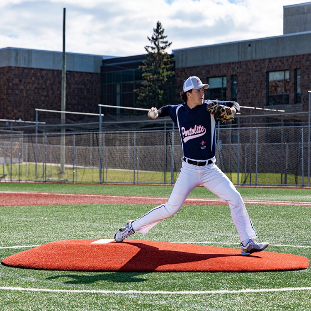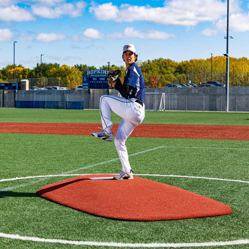 Measuring in at 10” H x 7’7” W x 11’3” L, this mound is perfect for 16 and over! This mound has tapered edges for a smooth transition, durable wear pad for many seasons of use, and high quality turf in multiple color options! The weight is 220 lbs, making this portable on any field with a group of people!