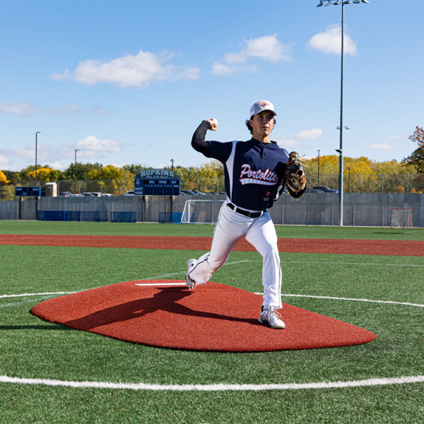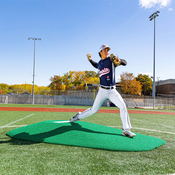 Measuring in at 10” H x 7’7” W x 11’3” L, this mound is perfect for 16 and over! This mound has tapered edges for a smooth transition, durable wear pad for many seasons of use, and high quality turf in multiple color options! The weight of each section is 110 lbs and 120 lbs, making this portable on any field with a group of people!
