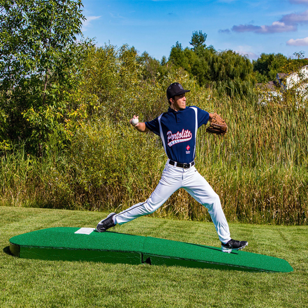 Measuring in at 10” H x 4’ W x 10’6” L, this mound is perfect for 14 and over! This mound is perfect for batting practice, bullpens, athletic facilities, and gymnasiums! The poly coating grips gymnasium floors without scratching! The weight of each section is 50 lbs, making this portable on any field with a group of people!
