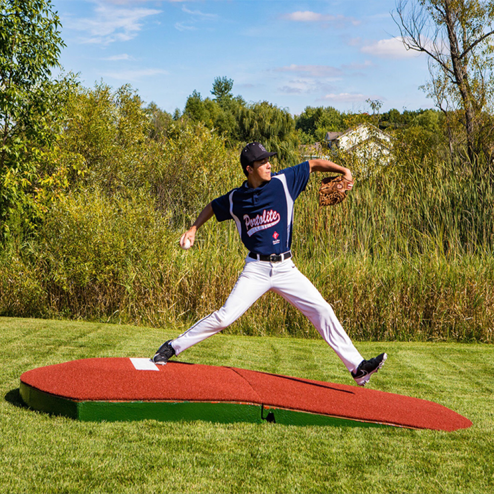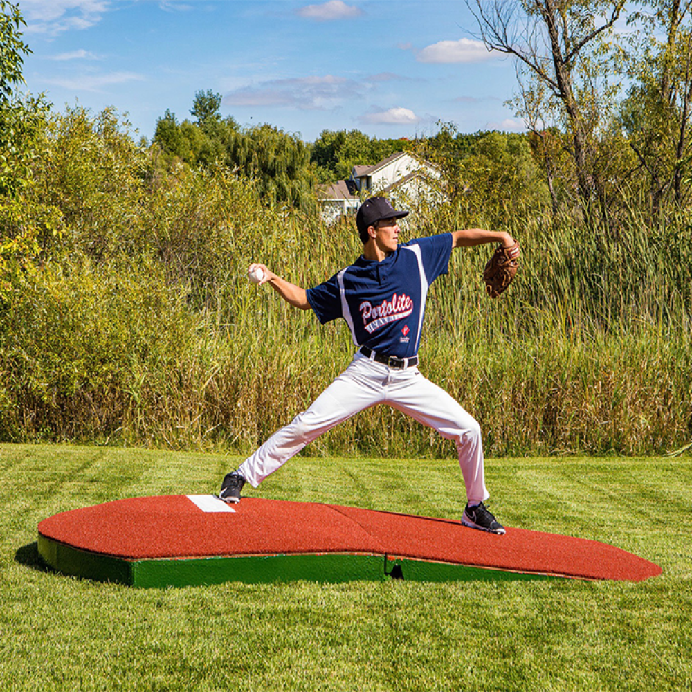 Measuring in at 10” H x 4’ W x 10’6” L, this mound is perfect for 14 and over! This mound is perfect for batting practice, bullpens, athletic facilities, and gymnasiums! The poly coating grips gymnasium floors without scratching! The weight of each section is 50 lbs, making this portable on any field with a group of people!