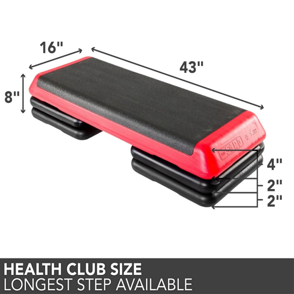 Our Lifeline Fitness Club Step with Risers is a great addition to any workout space! Achieve total body fitness with the same step used in gyms across the country! The step platform is 43" L x 16" W x 4" H with a non-slip, comfort cushion top that can support up to 350 lbs! Included are (4) 16" L x 16" W x 2" H Risers that can be used to add variety to your workout! There are (4) non-skid feet on each Riser, preventing sliding or scratching floors! You can perform exercises such as lunges, push-ups, sit-ups, step-ups, and more! Whether you're aiming for improved cardiovascular health, muscle tone, or weight loss, this versatile aerobic platform offers a challenging workout that adapts to your fitness level and goals!