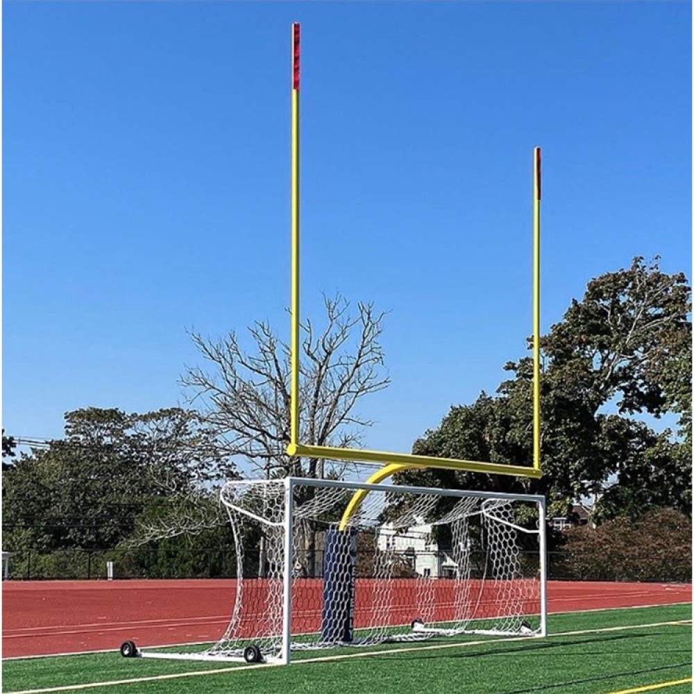 The Nova Premier Adjustable Soccer Goal Package is a premium option for recreation departments, schools, and commercial facilities! The rear crossbar is infinitely adjustable to fit underneath any football goal post! Goal dimensions are 8’ x 24’ for official high school, college, and professional use! The 4” OD Goals and 2” x 4” OD Full Base provide a durable and stable system that will last for years ahead! The Easy Track net attachment system with exclusive Flush Net Clips make sure the net fits seamlessly throughout!