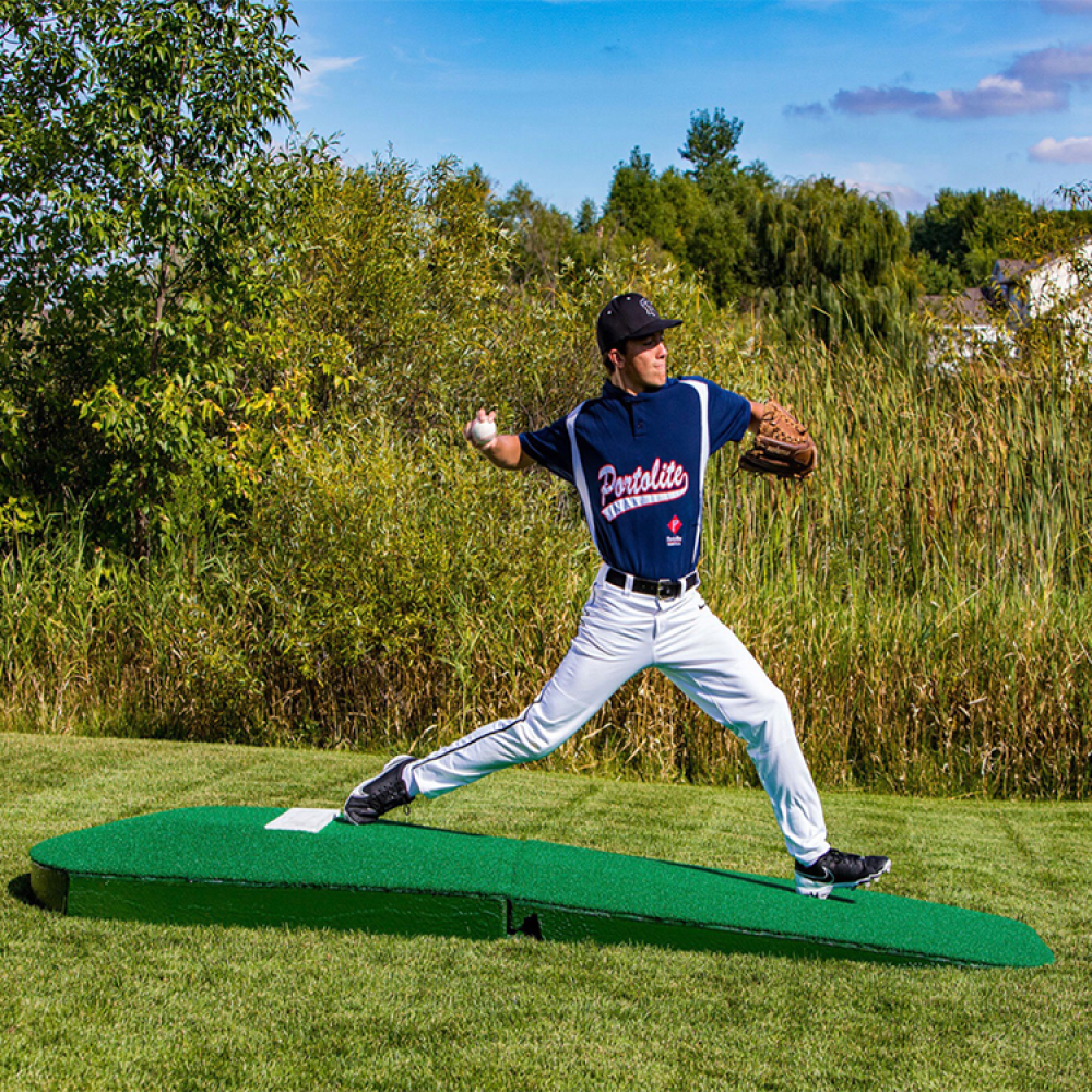 Measuring in at 10” H x 5’ W x 10’6” L, this mound is perfect for 14 and over! This mound is perfect for batting practice, bullpens, athletic facilities, and gymnasiums! The poly coating grips gymnasium floors without scratching! The weight of each section is roughly 60 lbs, making this portable on any field with a group of people!