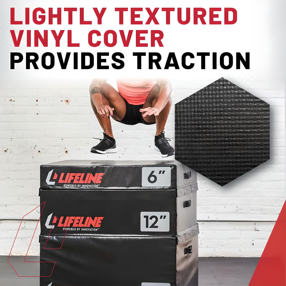 The Lifeline Stackable Soft Plyo Boxes are comfortable and adjustable, allowing you to get more explosive with less risk for discomfort or injury! Simply stack the boxes to the height that’s right for you and secure using the attached hook and loop straps! There is a large 35.5” x 30” landing zone offering plenty of room for confident, safe jumps! When you are done with your workout, use the handle grips to easily move them back to their station!