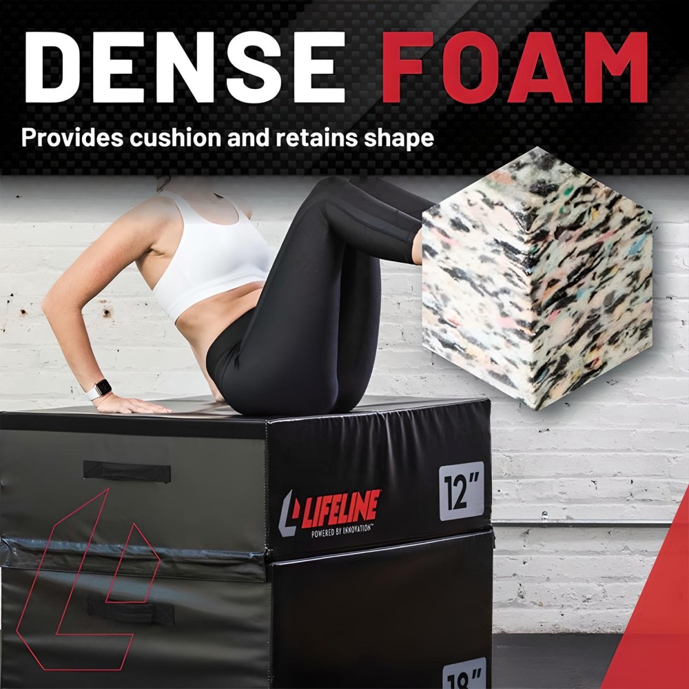 The Lifeline Stackable Soft Plyo Boxes are comfortable and adjustable, allowing you to get more explosive with less risk for discomfort or injury! Simply stack the boxes to the height that’s right for you and secure using the attached hook and loop straps! There is a large 35.5” x 30” landing zone offering plenty of room for confident, safe jumps! When you are done with your workout, use the handle grips to easily move them back to their station!