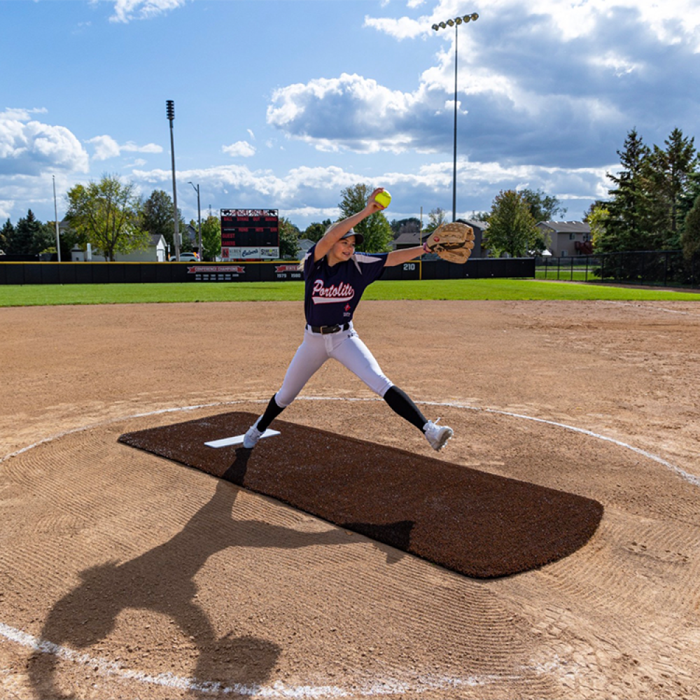 Portolite’s Pro Spiked Game Mat delivers the ultimate softball pitching experience from youth through college! Measuring in at 11’ L x 4’ W, the high school/college regulation size mat accommodates a pitcher’s full stride and offers extra space behind the rubber! The mat is designed with 7,000 spikes to prevent slipping, sliding, or bunching! Additionally, this mat is great for practice on dirt, grass, or synthetic turf!
