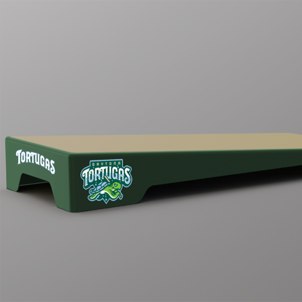 The Pitch Pro Model 508 is a great platform for both batting practice and youth bullpens! The high tech composite construction provides an extremely rigid surface that takes up a small footprint on grass and will not leave marks on the field! The dimensions of the platform are 4’ W x 8’ L. This platform comes with Astroturf Game Turf, which is one of the highest quality turfs on the market! Marine-grade gel coats make this platform completely waterproof and UV resistant! Easily transport the platforms with our 8" Wheel Kits! Custom graphics for teams and facilities available for $200 extra!
