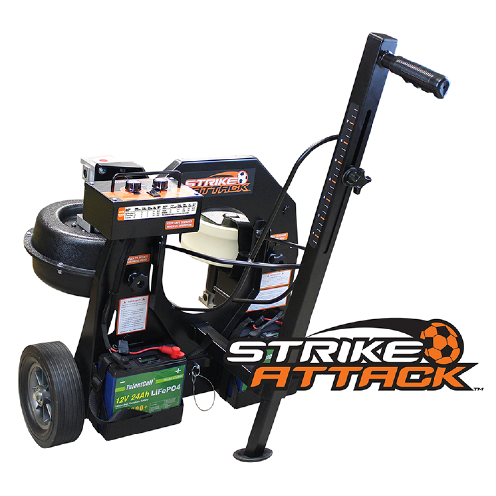 This machine is used to develop high level athlete’s skills in isolation! It has the capability to provide your athlete with realistic and powerful kicks, spin shots, backspin passes, cross-kicks, and free kicks with bend seen in competitive international games! It can be used for many drills for youth defenders, attackers, and goalkeepers to help develop balance, control, judgment, and range of coverage!
