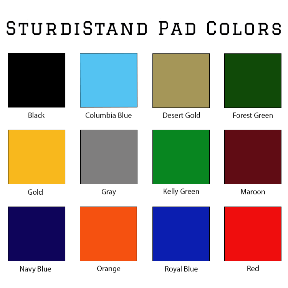 Each SturdiStand comes with a powder-coated finish, vinyl padded platform, no mark wheels, and padding with 12 color options!